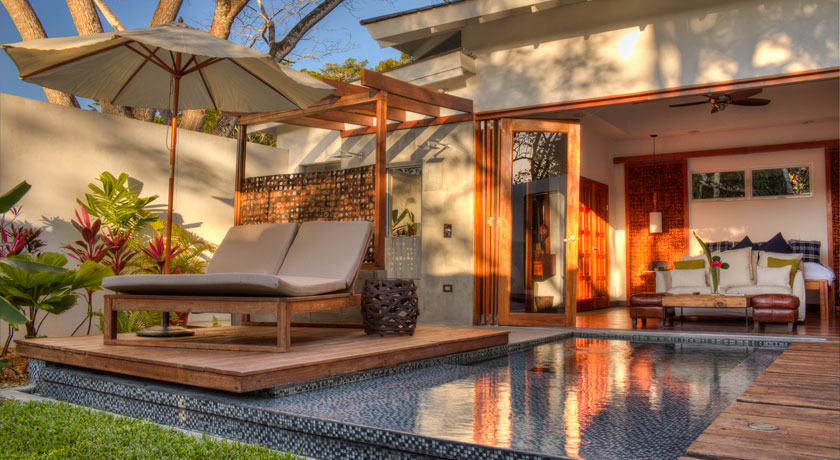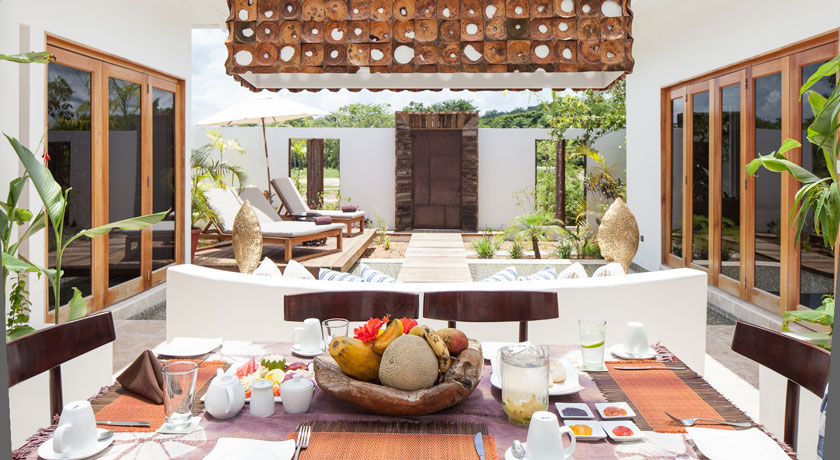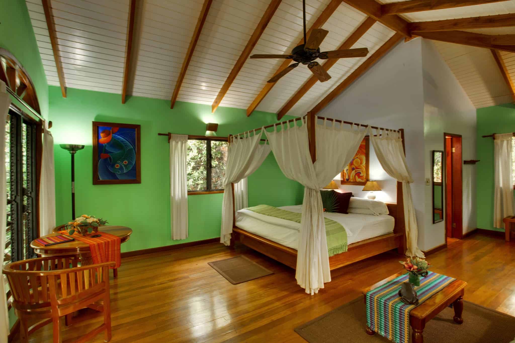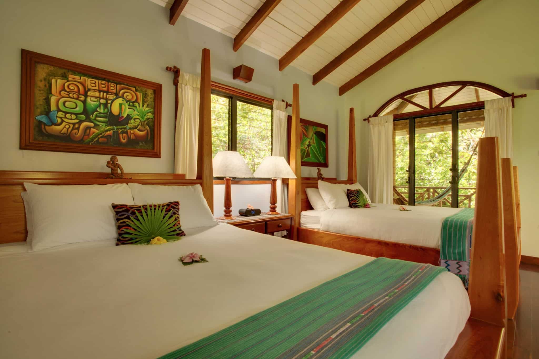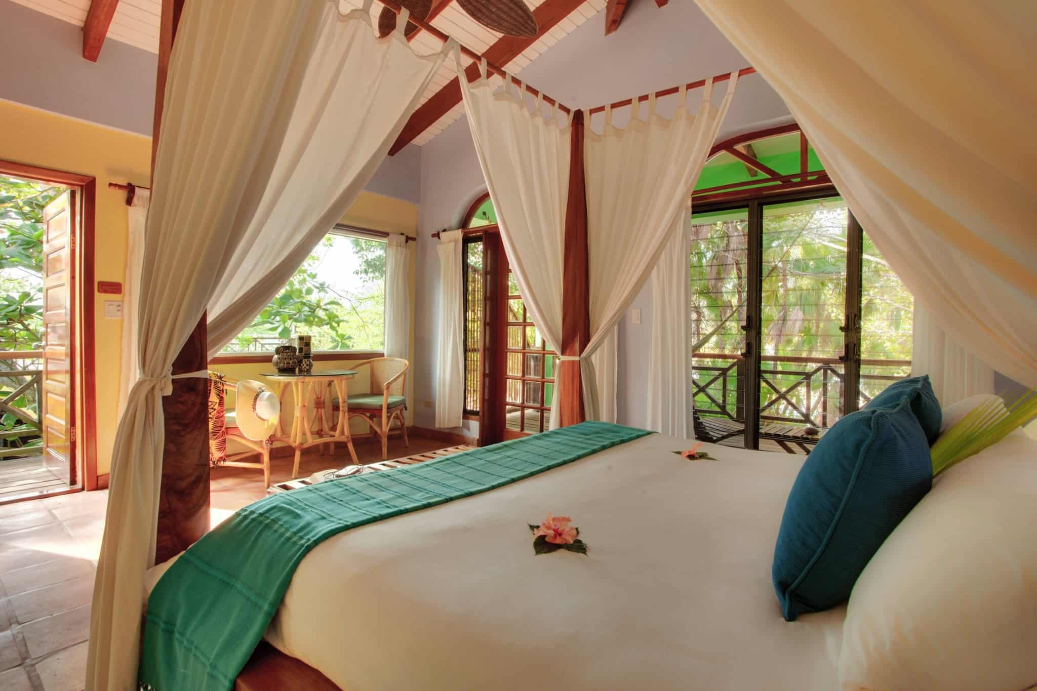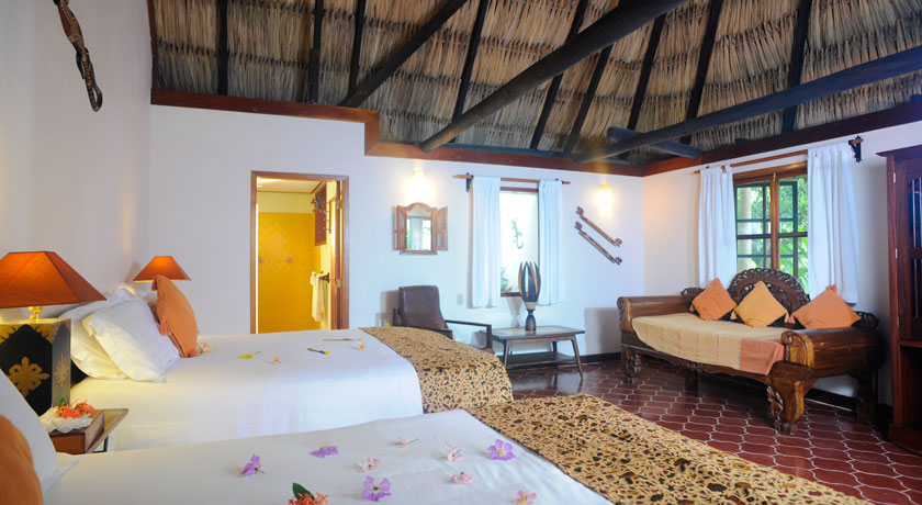 Spacious, comfortable rooms with a casually elegant decor, hardwood furnishings and Central American folk art. 6 intimate, private tree houses raised on stilts are set in our coast forest surrounded by orchids and birds. 2 honeymoon suites and 12 beachfront and beachfront deluxe rooms boast breathtaking ocean views. King or double queen beds with comfortable mattresses, plush linens, air conditioning, ceiling fans, private porches and colorful Mexican tiled bathrooms in all rooms.