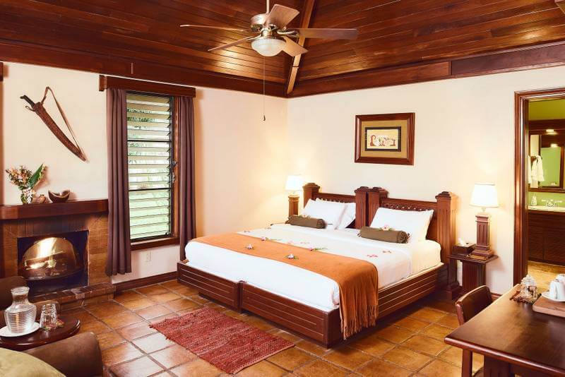 This jungle lodge is comprised of 18 comfortable palm-thatched cottage rooms, two garden suites, two treetop suites, and an orchard villa, nestled along the riverside in a setting of unmatched beauty and tranquility.