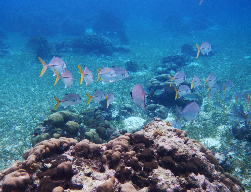 Off the southern tip of Ambergris Caye is Belize’s oldest marine reserve, the Hol Chan Marine Reserve. Hol Chan is Mayan for ‘little channel” The entire reserve focuses on a cut through the reef (called a quebrada) which is little more than 25 yards (23 m) wide and 30 feet (9 m) deep about 4 miles southeast of San Pedro. The reserve was formed primarily as a community-based initiative due to concern over the high level of uncontrolled, often destructive fishing and diving activities in the area. Reserve status was also called for by international organizations such as the New York Zoological Society (NYZS) and Peace Corps, due to the unique formation of the channel, the abundant fishery resources (including conch and lobster) and the feasibility of including an interlinked system of coral reef, sea grass and mangrove habitats in this area.