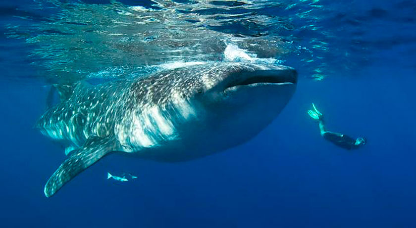 Whale sharks are the biggest fish in the ocean growing up to lengths of 60 feet (18 meters) and are gentle filter feeders that eat minute plankton and spawn . Scuba Divers and snorkelers get a rare opportunity to swim along with these magnificent creatures when they book on a whale shark excursion with Splash Dive Center, and we follow special guidelines and procedures to ensure safety and to limit any harm that may be caused to the whale sharks. Snorkeling is done on the surface in open water following the bubbles of scuba divers which resemble spawn and draw the whale sharks in.